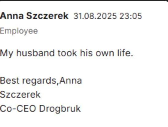 “你最真诚的皮奥特·斯泽雷克,Drogbruk公司CEO。”